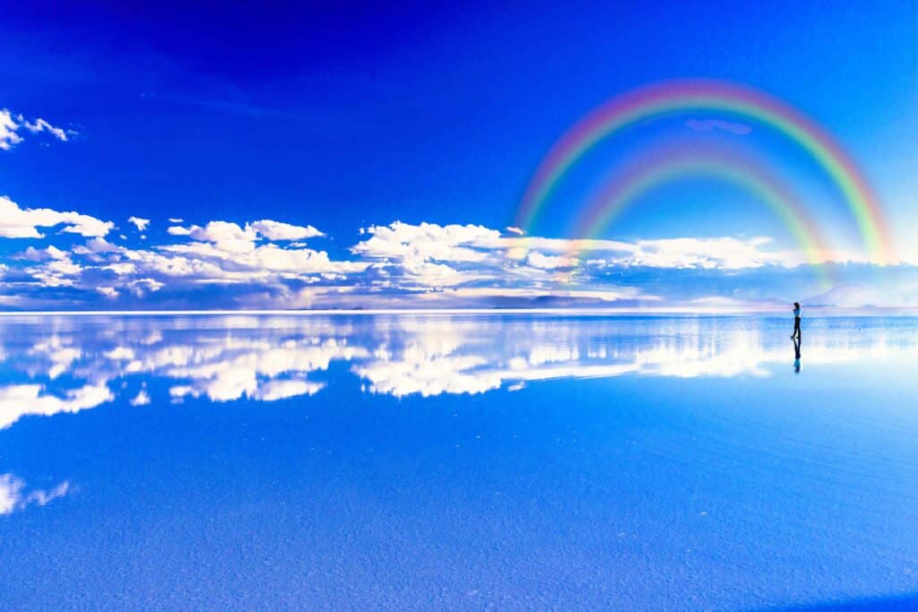 Isto é, “um grande espelho que reflete a imensidão do céu na noite”. Ao visitar o Salar de Uyuni, parece que você está tocando o ceú.