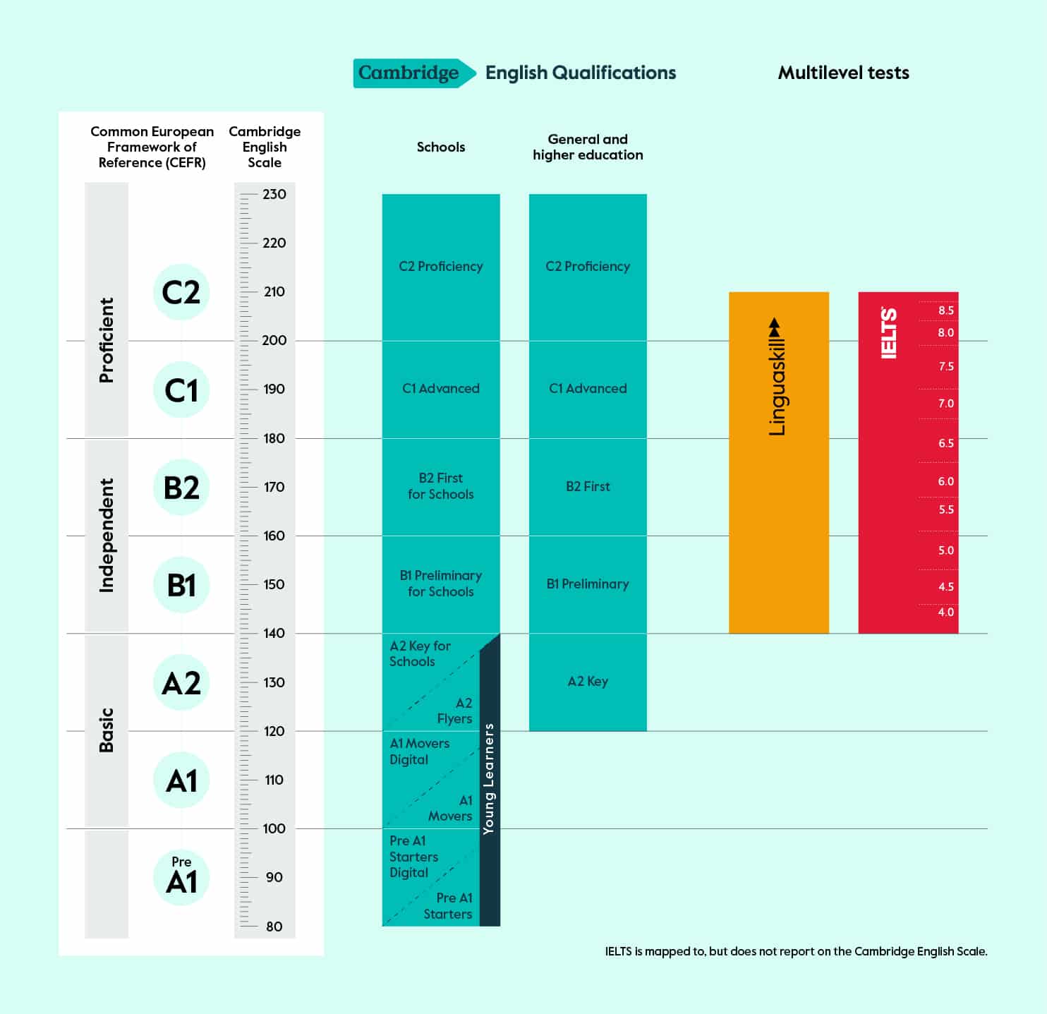 Os Cambridge English são um conjunto de exames de proficiência em inglês para todas as idades e níveis desenvolvidos pela Universidade de Cambridge. Eles medem seu nível de conhecimento da língua com base no CEFR (Common European Framework of Reference for Languages) — o Quadro Europeu Comum de Referência para Línguas, um padrão internacional usado para avaliar habilidades linguísticas.